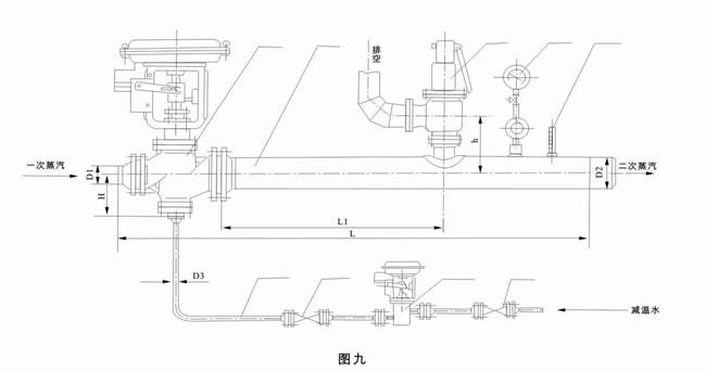 本裝置所需的大吊架、安全閥排汽管、疏水器、補償器、熱力調(diào)節(jié)裝置的安裝管線和測量元件、連接件等均由用戶自理,主要熱力調(diào)節(jié)裝置供貨,根據(jù)訂貨合同協(xié)議規(guī)定。